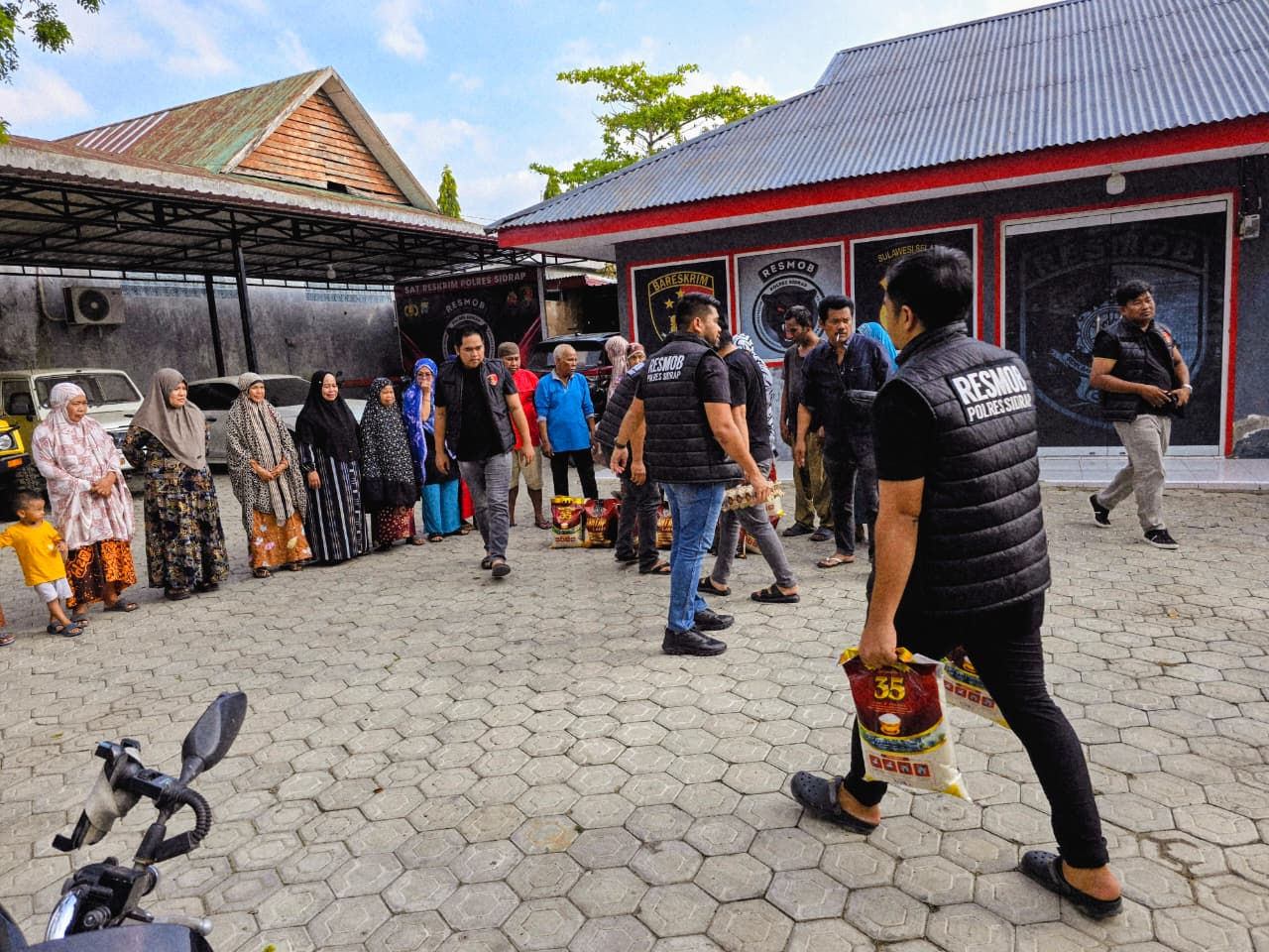 Seorang anak kecil yang ikut mendampingi ibunya menatap paket dengan mata bulat penasaran. “Apa ini, Pak?” tanyanya lirih. Personil Resmob menjawab dengan lembut, “Ini makanan buat keluarga, biar kalian kuat.” Anak itu tersenyum malu-malu, menggenggam paket yang lebih besar dari tubuhnya, seolah memeluk kehangatan yang hadir dari perhatian polisi.