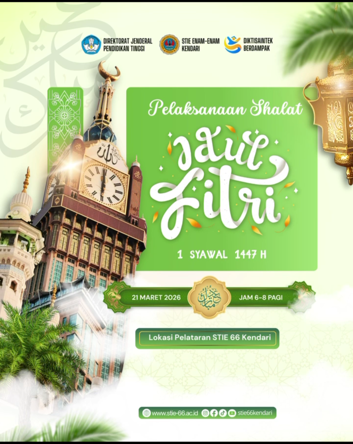 Dalam rangka menyambut hari kemenangan keluarga besar STIE 66 Kendari kembali mengadakan Sholat Idul Fitri 1447 Hijriyah. Kegiatan rutin tahunan tersebut akan digelar di Pelataran Kampus.